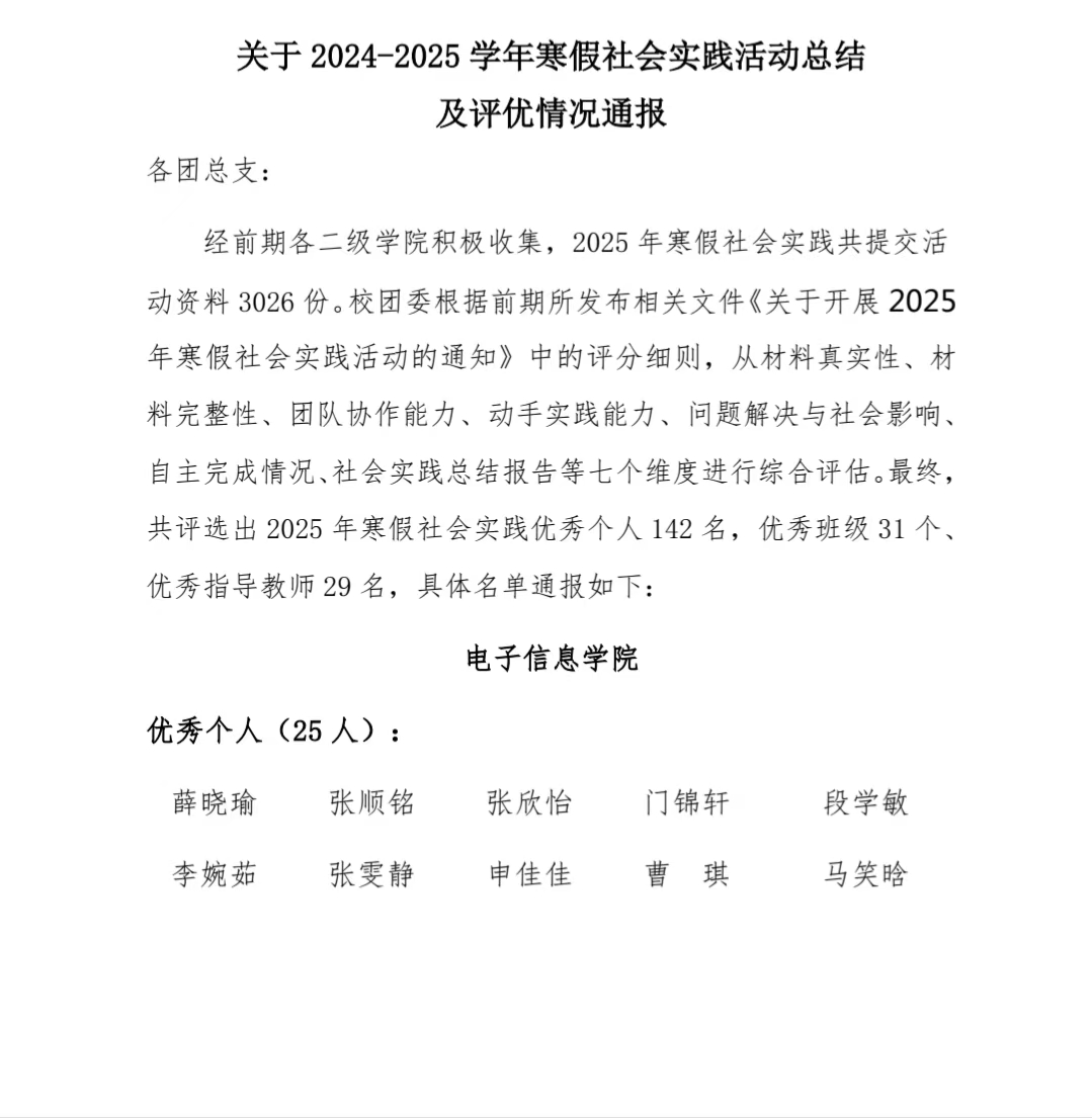 关于2024-2025学年寒假社会实践活动总结及评优情况通报